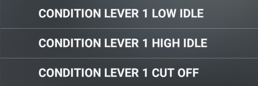 - Condition lever cutoff/low idle/high idle to switch between the three lever positions.