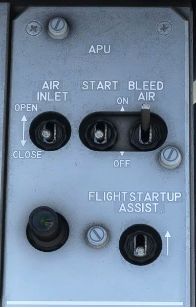 Air inlet needs to be opened prior to starting the APU as it allows air supply. Starter switch will trigger an automatic sequence after which APU will reach and maintain 100% RPM.
