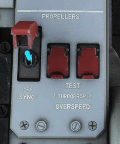 Right engine propeller speed can be synchronized with left engine propeller to decrease noise and vibrations while in cruise.