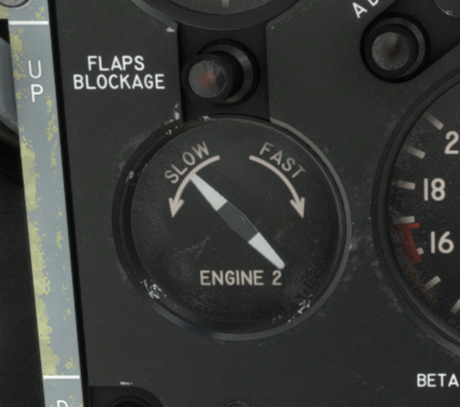 A synchroscope allows to see rotation speed differences between two engines. Right engine propeller rotates faster than left engine propeller if the needle rotates clockwise, and slower if counterclockwise.