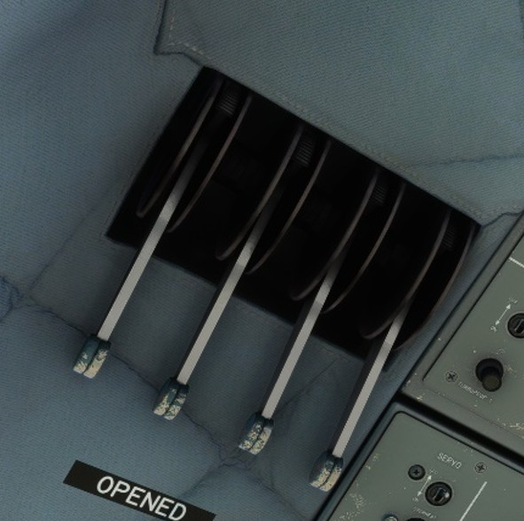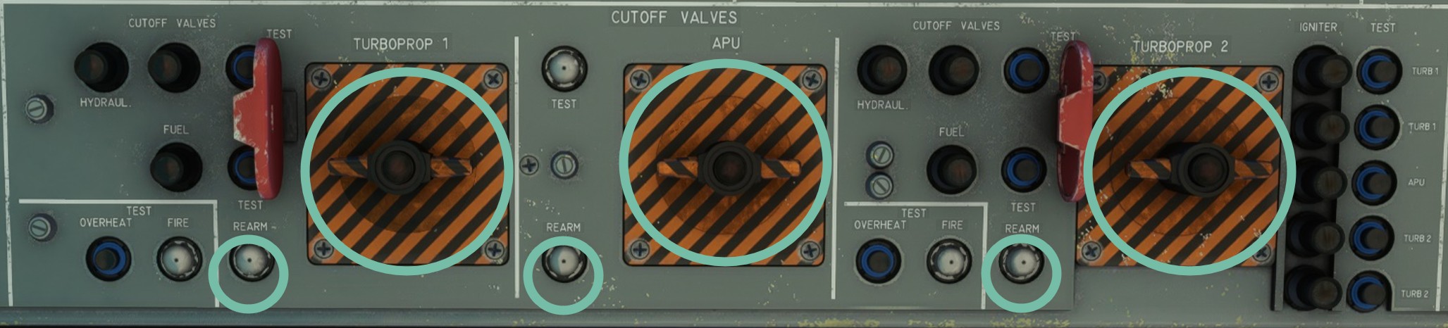 Several fuel valves allow to isolate each tank, left and right fuel lines, engines and APU. All of them are located on left and right sides of top console.