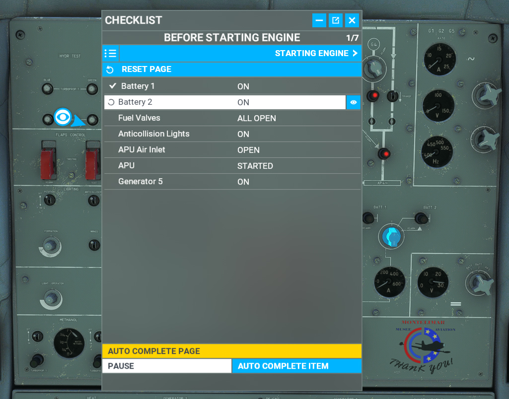 We propose in this section detailed checklists, close to the ones used during real aircraft operation.